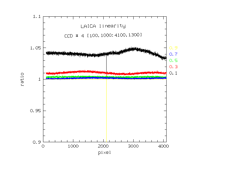normalized flat. After flatfielding with skyflats the frames are flat to typically about 0.1%. The shutter of LAICA allows very short exposure times down to 0.1 second. For skyflats, the exposure time between 2 consecutive flats must be changed by a factor of about 1.2.