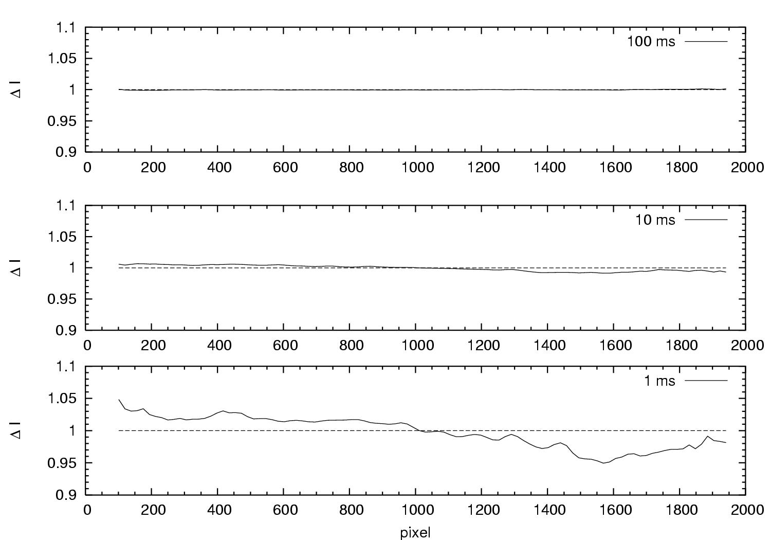 - Exposure homogeneity > 99% at 100ms exposure time. The minimum exposure time is 1ms, with an error of 10%.