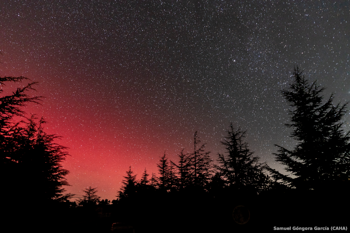 La pasada noche del 10 de octubre de 2024, una magnífica aurora boreal iluminó los cielos de casi toda Europa. Incluso en lugares tan al sur como el Observatorio de Calar Alto en Almería (sur de España), la aurora pudo observarse con extraordinaria luminosidad roja. Quizá lo más impresionante hayan sido los pilares que pudieron verse, un fenómeno inusual y raramente visto desde latitudes tan al sur como Almería.