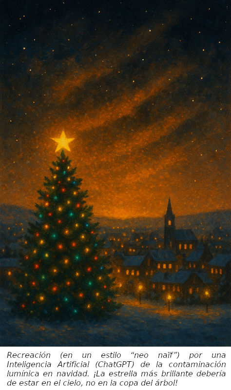 Desde el observatorio de Calar Alto y el IAA-CSIC, creemos que se puede disfrutar de las navidades y del maravilloso cielo estrellado de invierno usando un alumbrado inteligente, de bajo brillo pues de bajo consumo, orientado preferentemente hacia el suelo y no hacia el cielo, y que se apague a una hora razonable (p.ej., a medianoche), durante un mes, no mucho más.