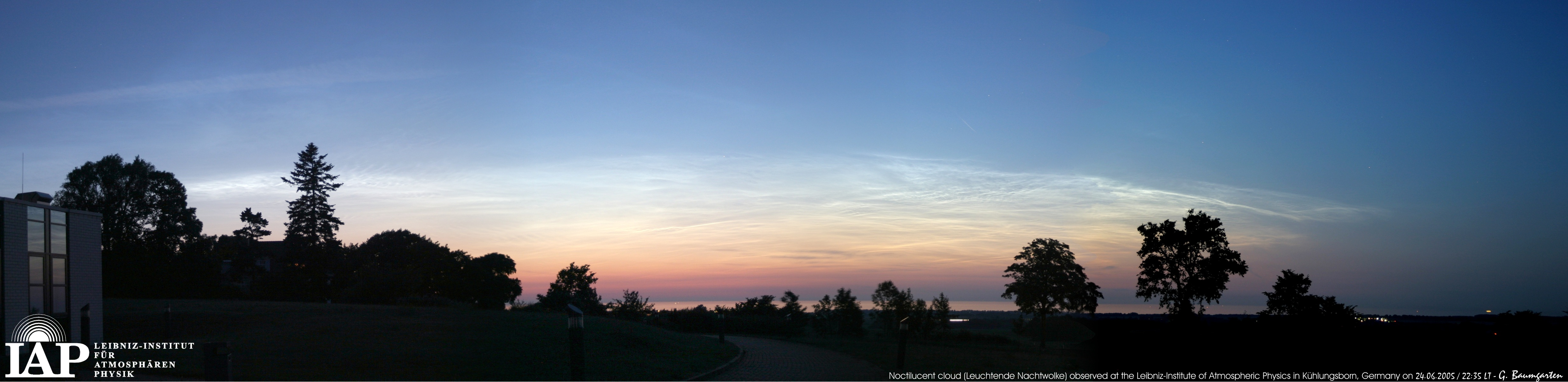 Las nubes noctilucentes son formaciones de hielo de agua que aparecen en la parte más alta de la atmósfera, con altitudes en torno a los 85 km. Trazan las condiciones que imperan a esa altitud y constituyen la única fuente de información sobre esas capas de la atmósfera, porque esta zona resulta demasiado elevada para alcanzarla con globos, pero es demasiado baja para que los satélites artificiales puedan colocarse allí en órbitas estables.