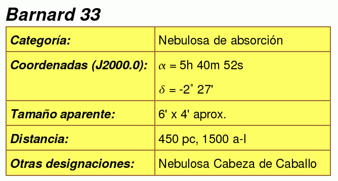 La conocida nebulosa Cabeza de Caballo en Orión (también denominada Barnard 33)