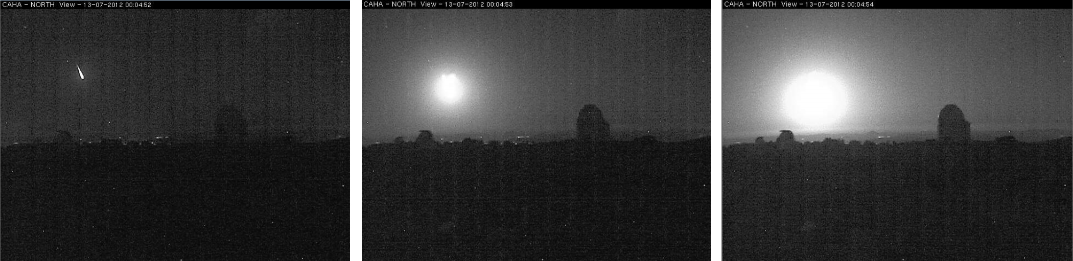 The data obtained at Calar Alto show the event in three frames registered with the cameras of the Observatory, that take images every second. These are the data taken most South-East, and their analysis has contributed to study the trajectory of the fireball.