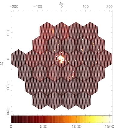 Fig 1:The 31 individual Mosaic Pointings of PPAK, comprising each one